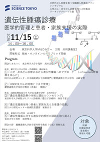 場所・開催形式 | 現地・オンラインのハイブリッド開催 会場 東京科学大学 M&Dタワー2階 共用講義室2 |